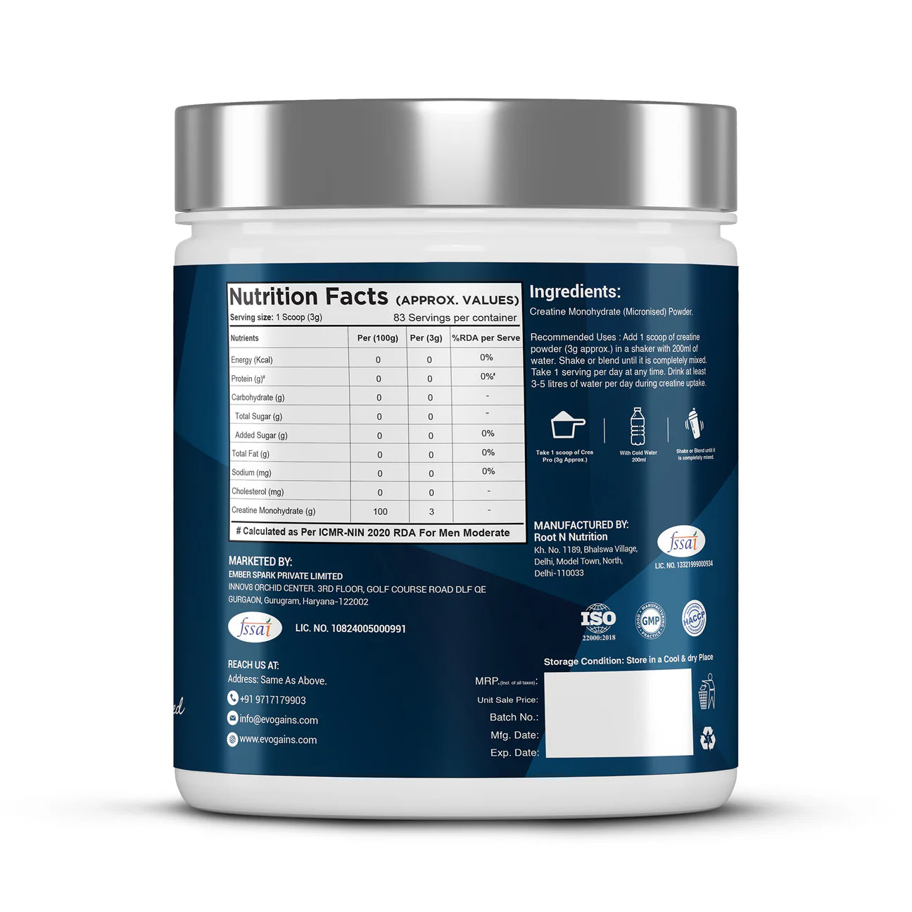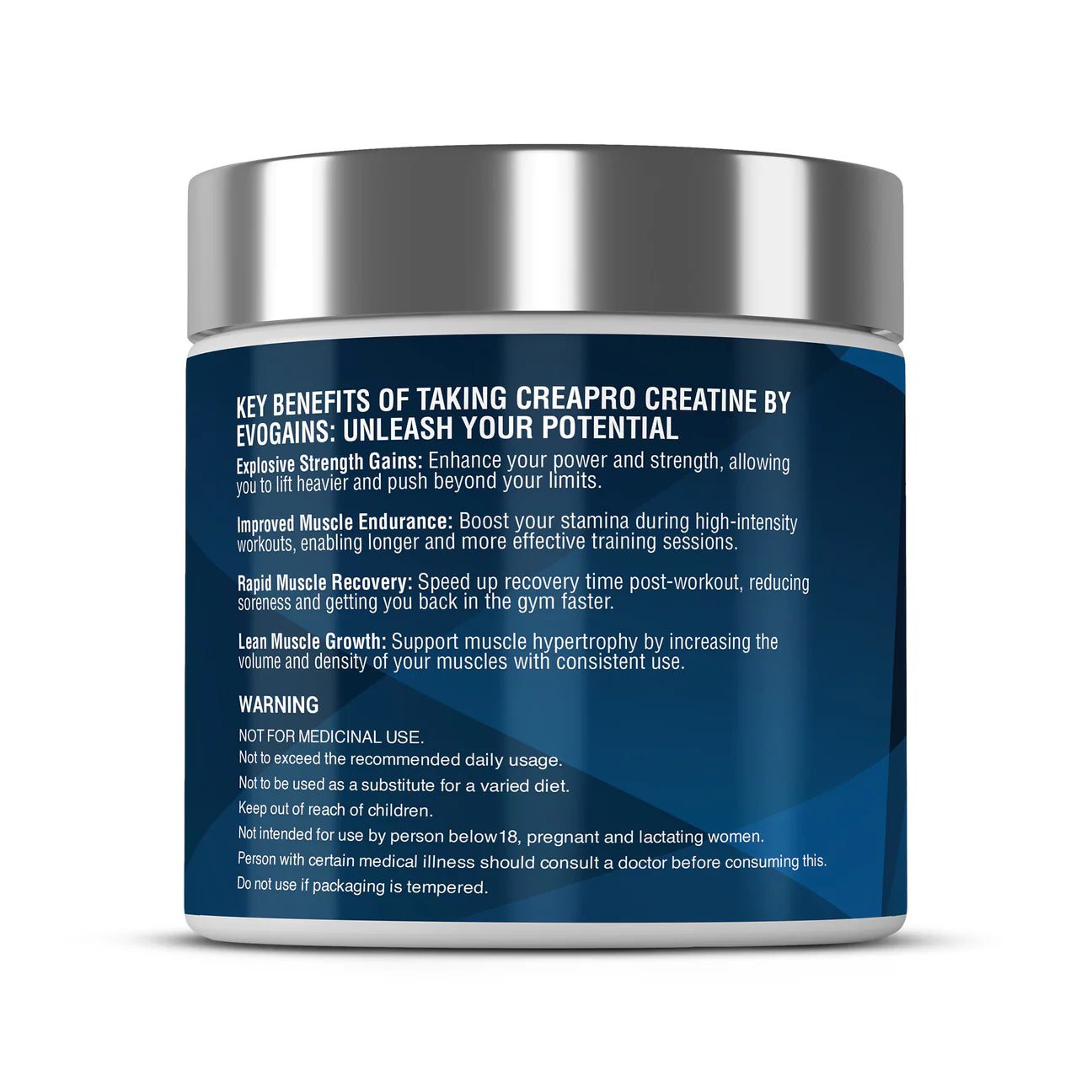 Add EvoGains Crea Pro Creatine to your routine and experience a noticeable improvement in power, performance, and recovery. Take your workouts further than ever!