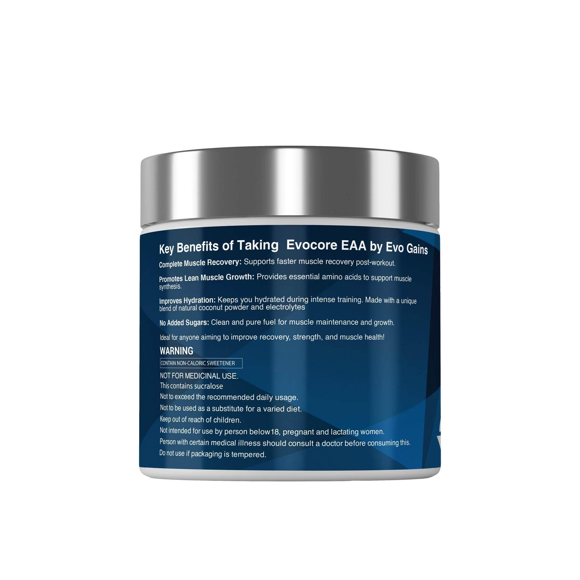 Power up your workouts with a refreshing blast of flavor and essential fuel your body craves. EVOCORE EAA is a scientifically formulated blend of 9 Essential Amino Acids, natural coconut water powder, and key electrolytes β designed to hydrate, energize, and boost recovery all in one scoop.