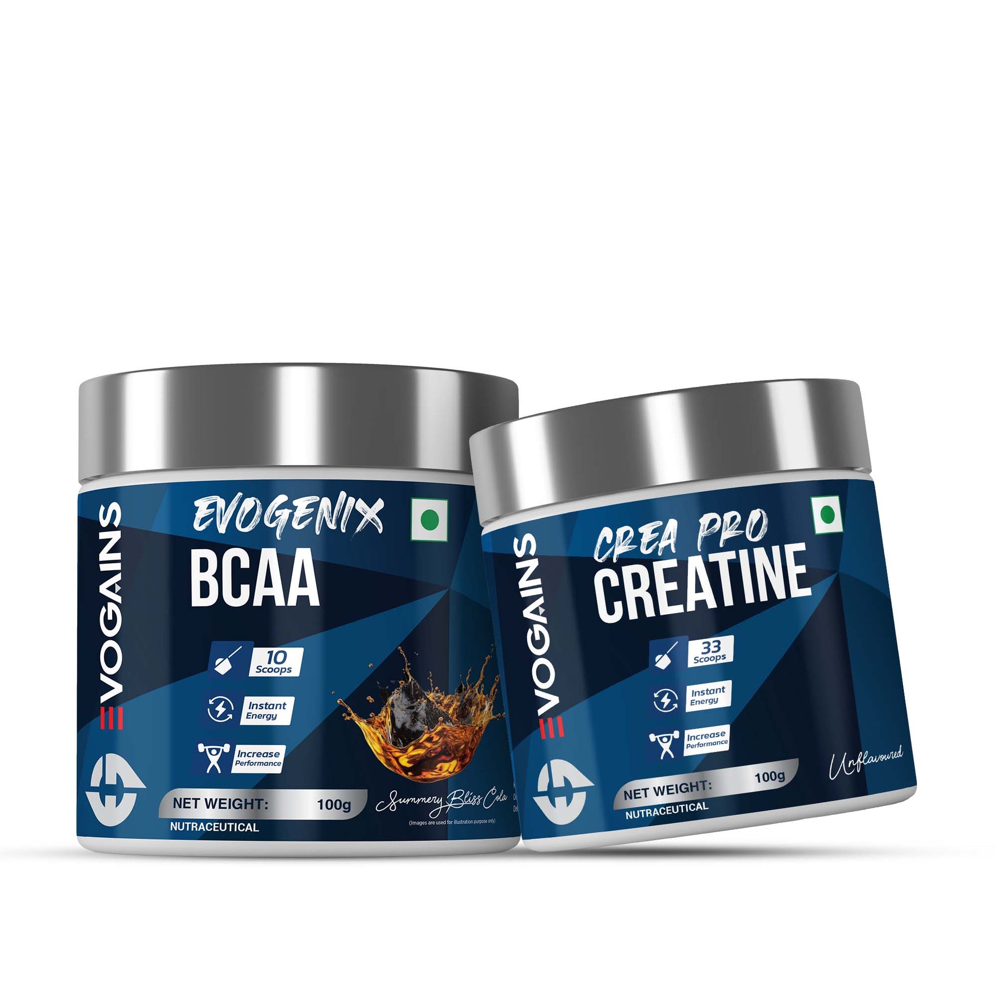 Fuel your workouts with the ultimate performance duo – Evogains BCAA + Creatine Power Stack. Designed for serious lifters, athletes, and fitness enthusiasts, this stack delivers instant energy, faster muscle recovery, and enhanced strength in every scoop.